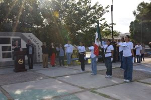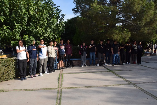 La ceremonia inició con la Bandera Nacional al son del Himno Nacional Mexicano, una melodía que evoca los valores de unidad, lucha y patriotismo que definen a México. En este evento, se contó con la asistencia de alumnos, personal docente, personal administrativo y directivos, quienes se reunieron para rendir un homenaje solemne y reflexionar sobre la importancia de preservar y promover los valores cívicos y patrios.