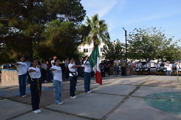 Tecnológico Nacional de México – Chihuahua. Hoy 06 de octubre de 2025, en punto de las 9:00 a.m., en las afueras de la Plaza de Graduados, se llevó a cabo una emotiva Ceremonia de Honores a la Bandera organizada por el personal de Eléctrica-Electrónica, a cargo de la Mtra. Martha Leonila Torres Narváez, Jefa de dicho departamento.