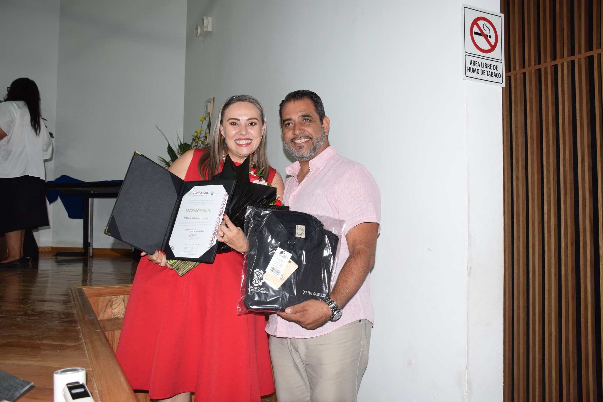 Con 45 años de entrega, dedicación y compromiso en el ámbito educativo, la maestra Lic. Marisela Obeso Granados fue reconocida por su invaluable labor. Durante la ceremonia, compartió un emotivo mensaje que conmovió a los presentes, destacando el amor por la enseñanza y el orgullo de haber contribuido a la formación de múltiples generaciones.