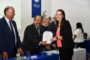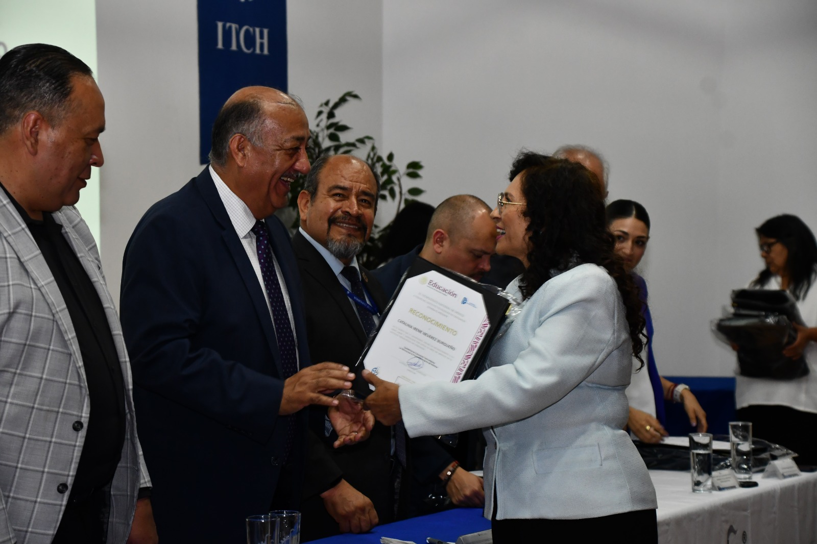 En un emotivo acto de reconocimiento póstumo, el Director del ITCH, hizo entrega de un reconocimiento especial a la esposa del Dr. Chacón, Sra. Bernardita Díaz en honor a su destacada trayectoria académica y su invaluable contribución al desarrollo de la institución.