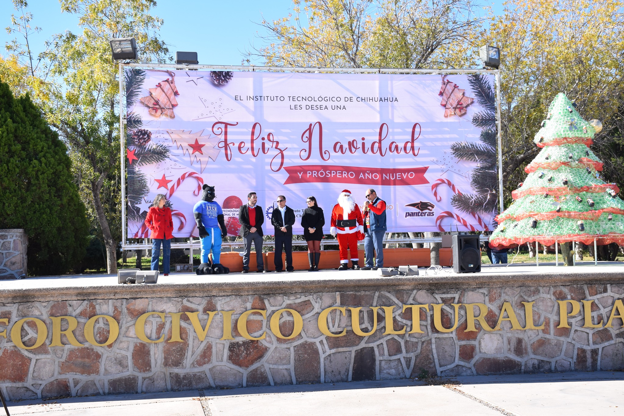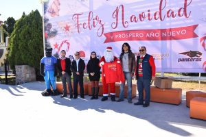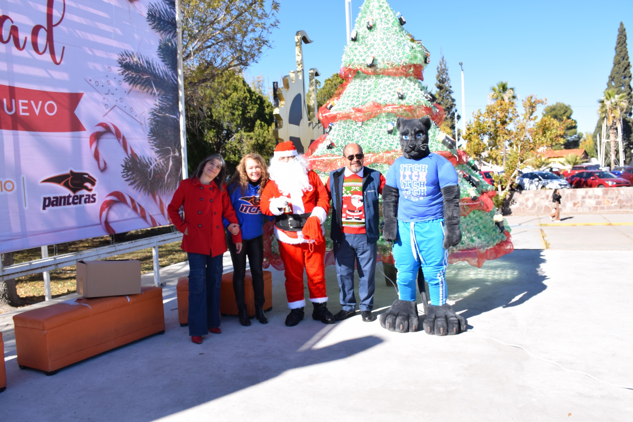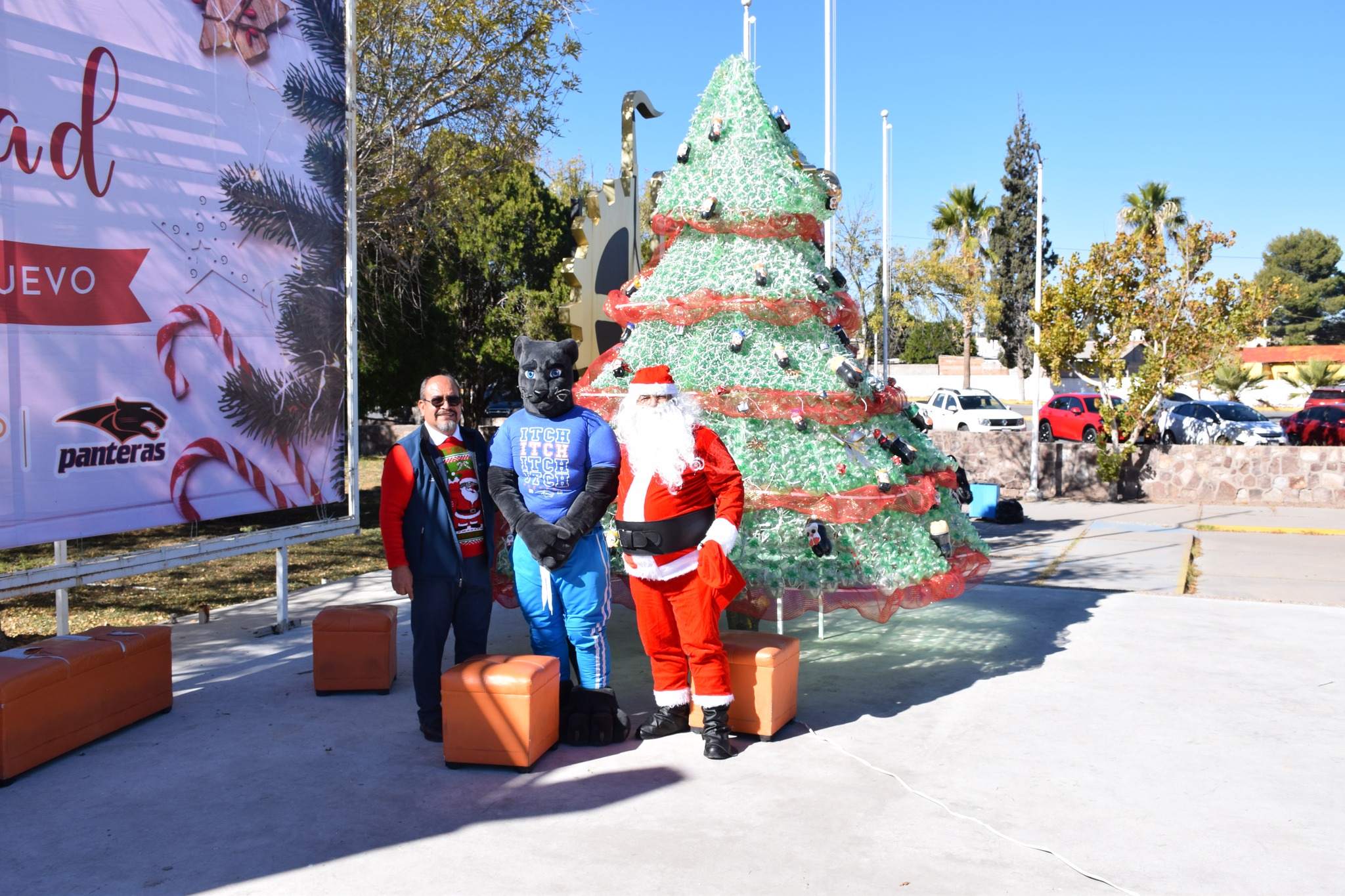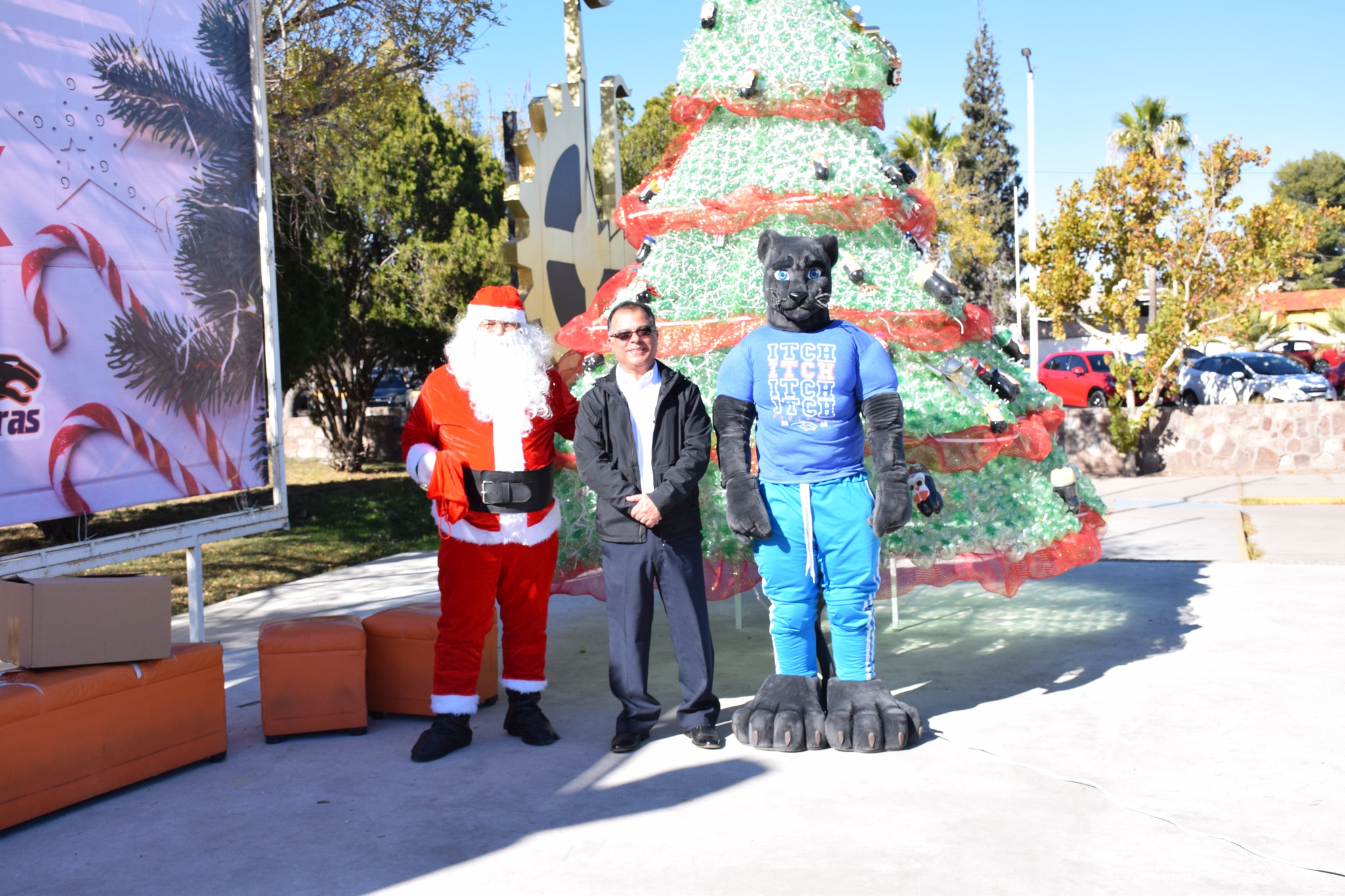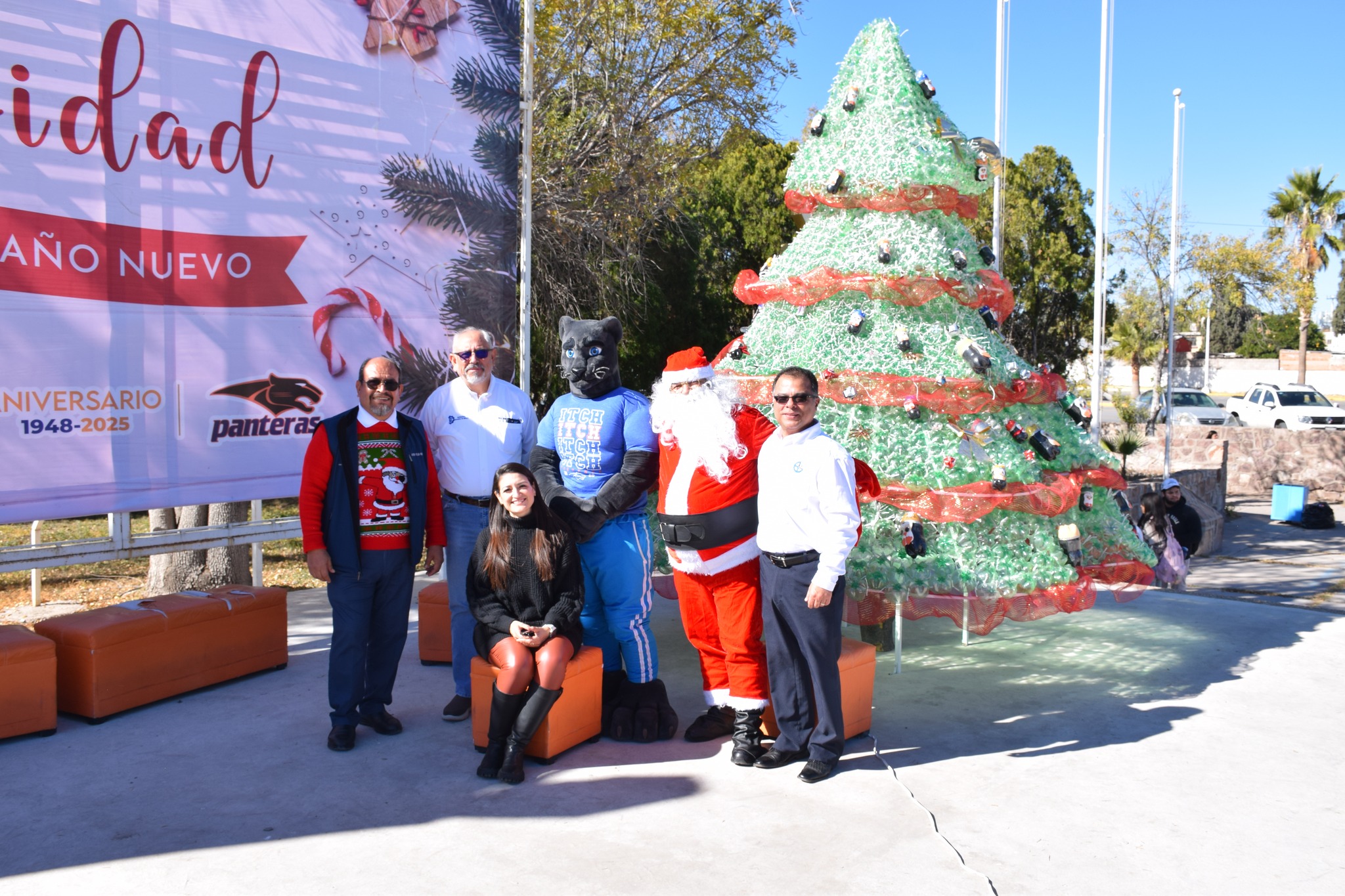 Miles de luces brillaron sobre el gigantesco pino que fue protagonista del día, el cual fue elaborado de botellas de plástico (pet) decorado con esferas y detalles navideños, acompañado de nuestra “Pantera”, Santa Claus, música, y regalos.