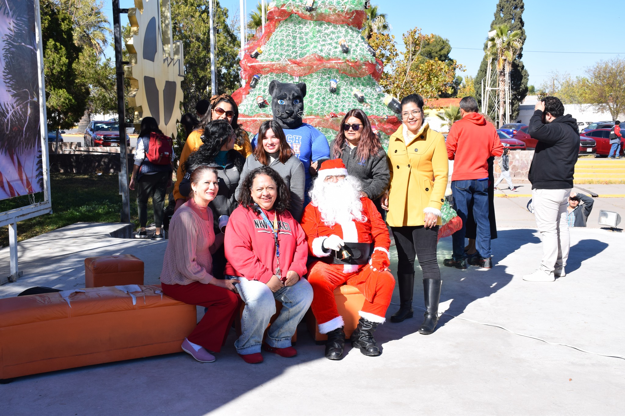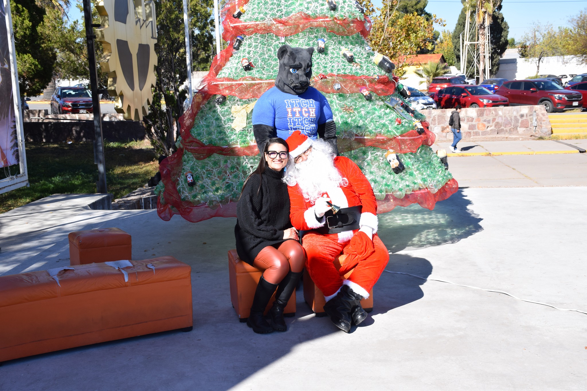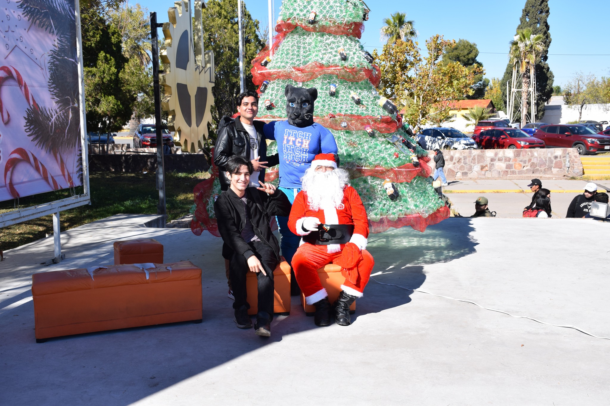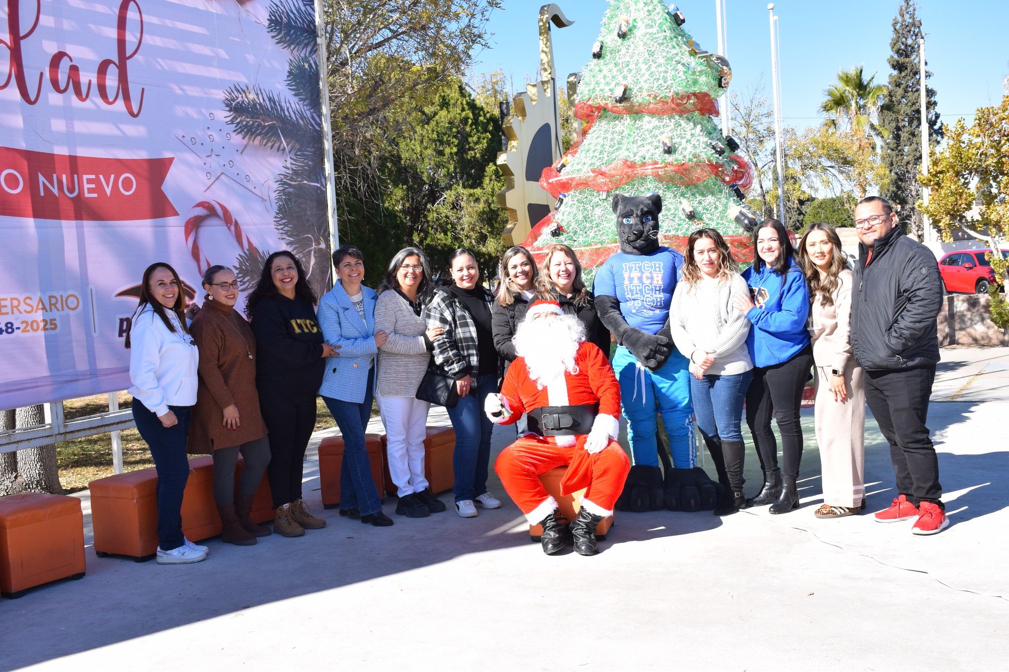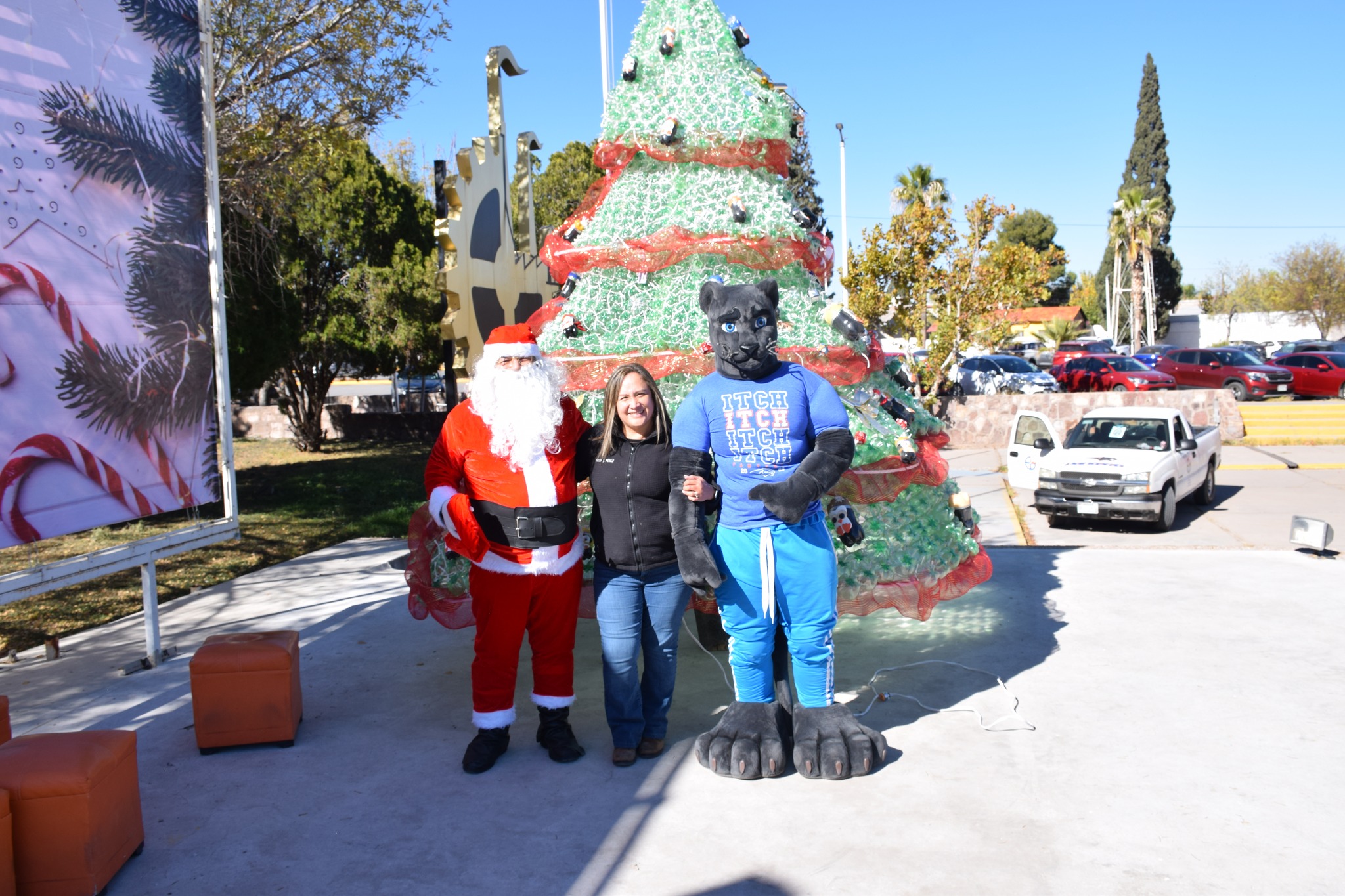 Miles de luces brillaron sobre el gigantesco pino que fue protagonista del día, el cual fue elaborado de botellas de plástico (pet) decorado con esferas y detalles navideños, acompañado de nuestra “Pantera”, Santa Claus, música, y regalos.
