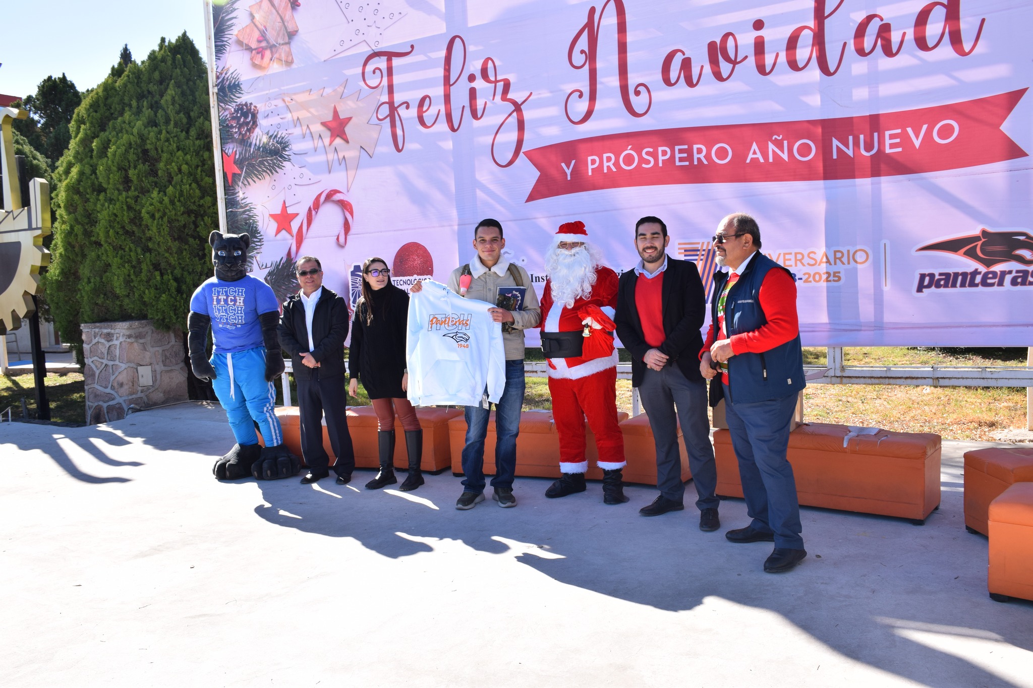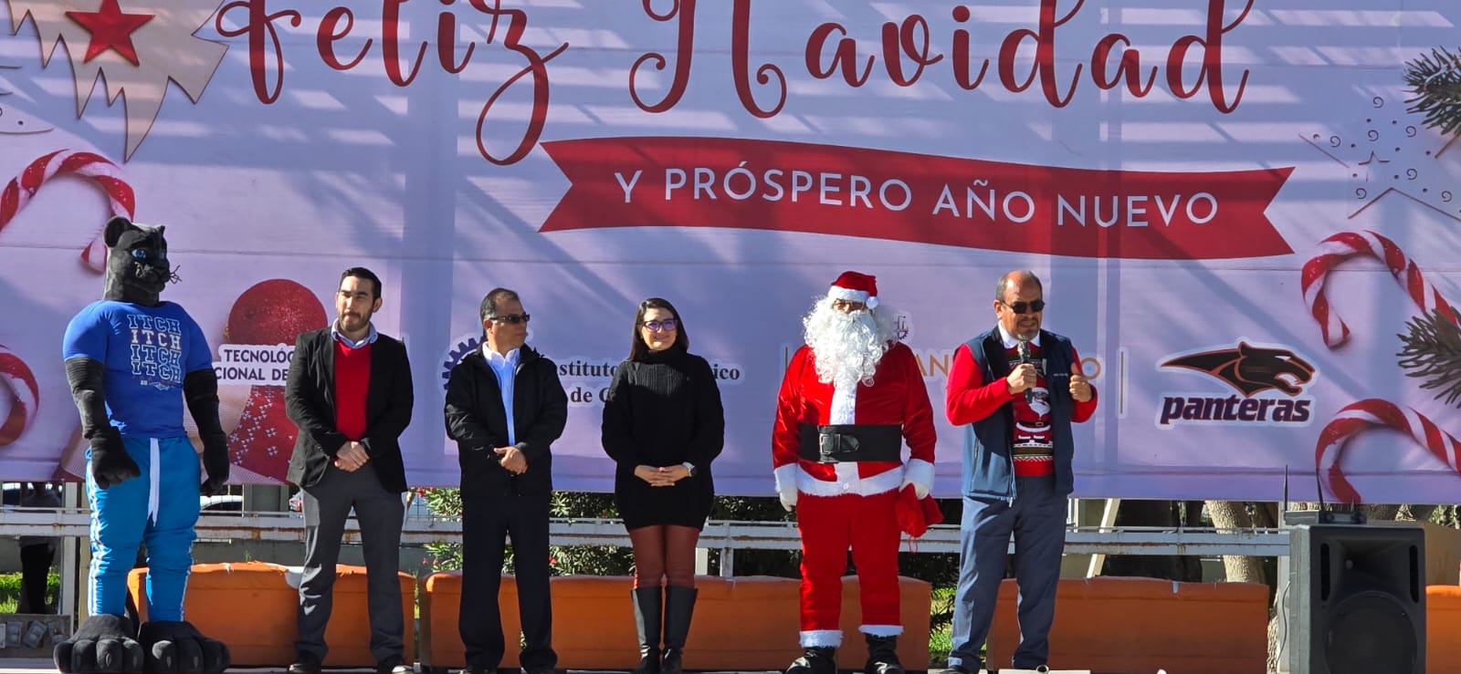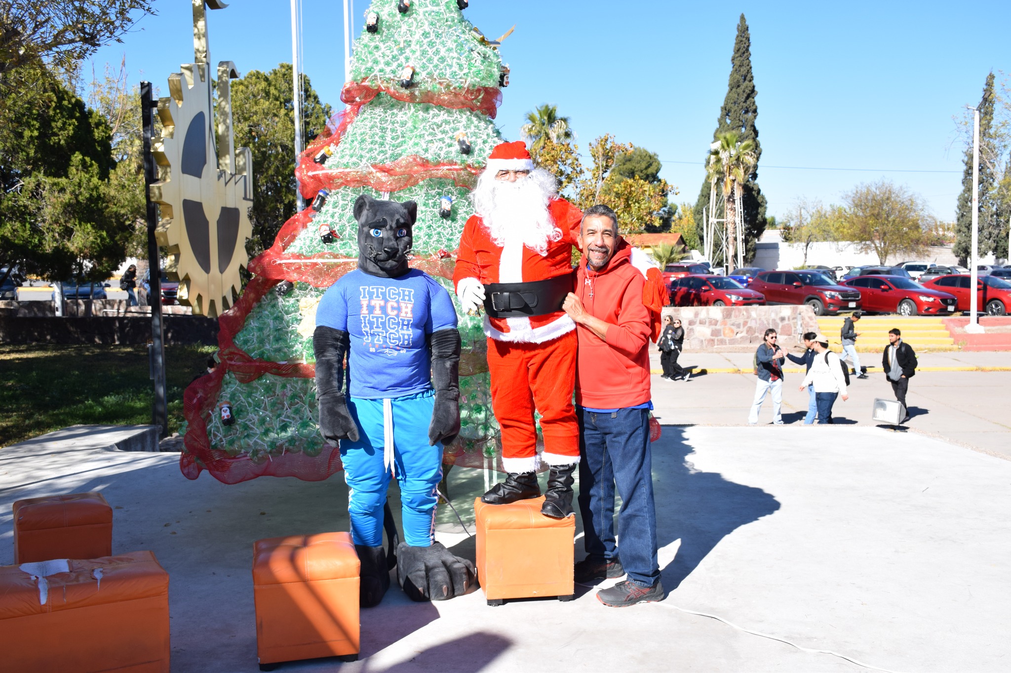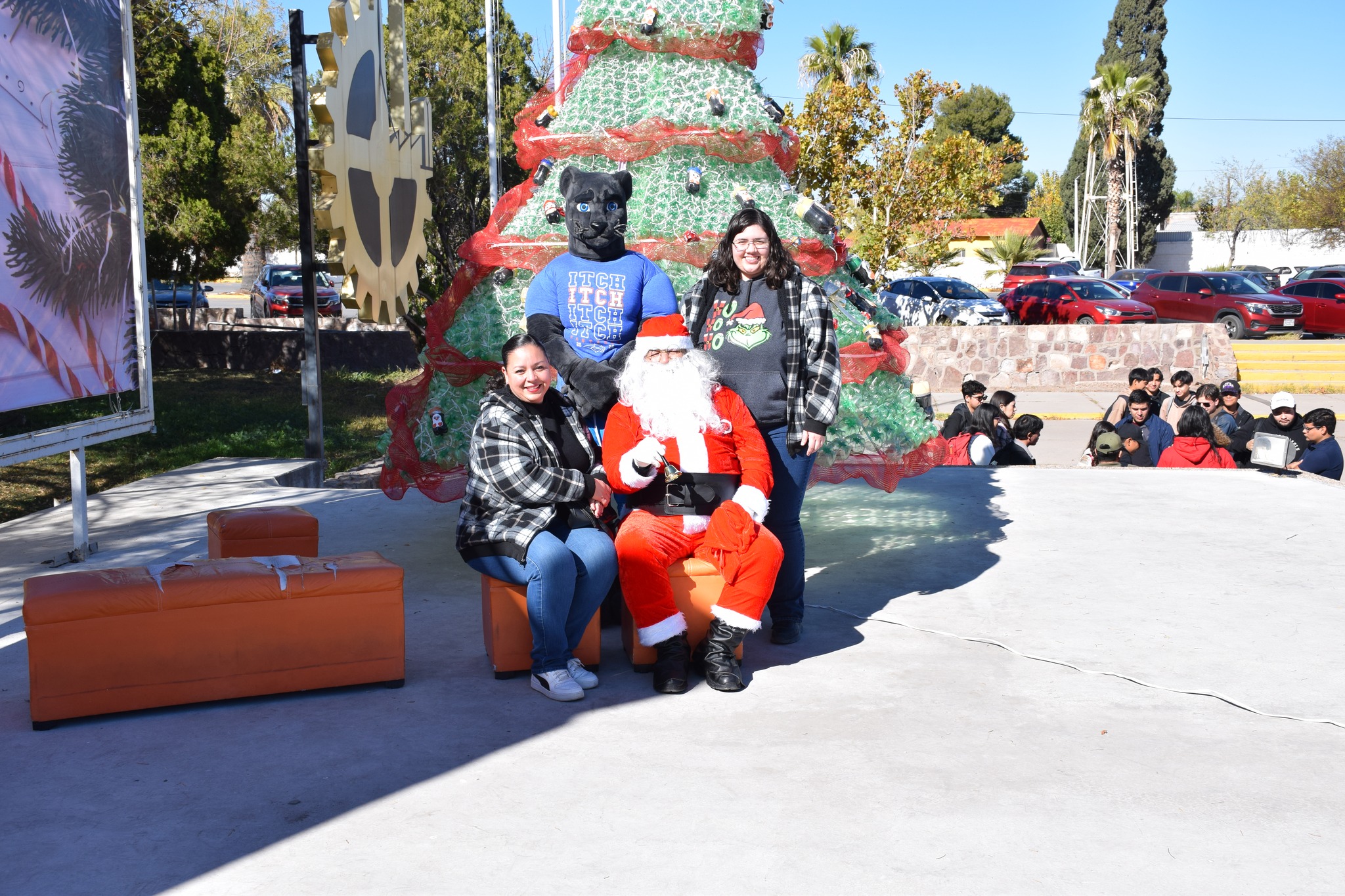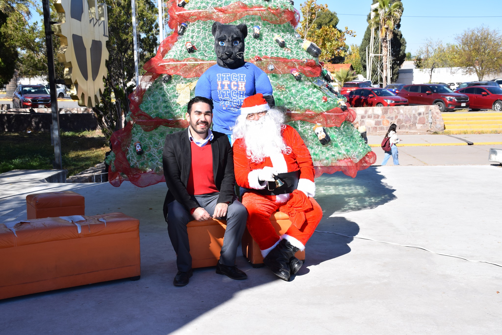 Miles de luces brillaron sobre el gigantesco pino que fue protagonista del día, el cual fue elaborado de botellas de plástico (pet) decorado con esferas y detalles navideños, acompañado de nuestra “Pantera”, Santa Claus, música, y regalos.